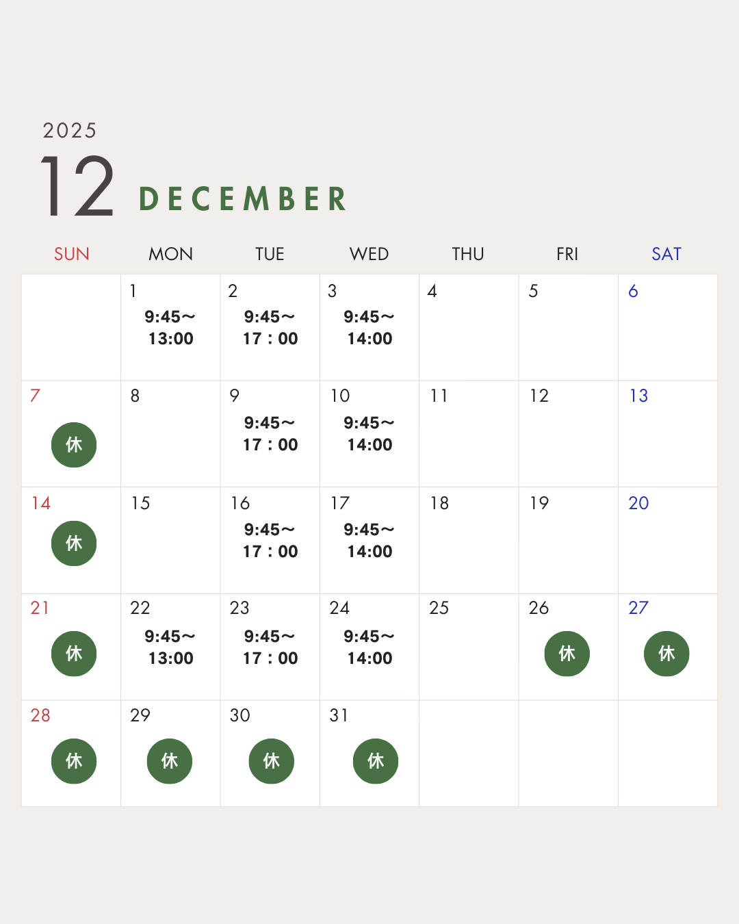 cafeぽてと 12月 2025, 12月 15th, 月曜日 at 2:47 PM. こんにちは!Caféぽてとです。 遅くなりましたが、12月の営業スケジュールです! また、12月から火曜日は17時まで営業しています。15~17時はテイクアウト販売のみ(スイーツ・パン・焼き菓子・牛乳・卵)となっており、喫茶の営業・ドリンクの販売はございませんのでご了承ください。